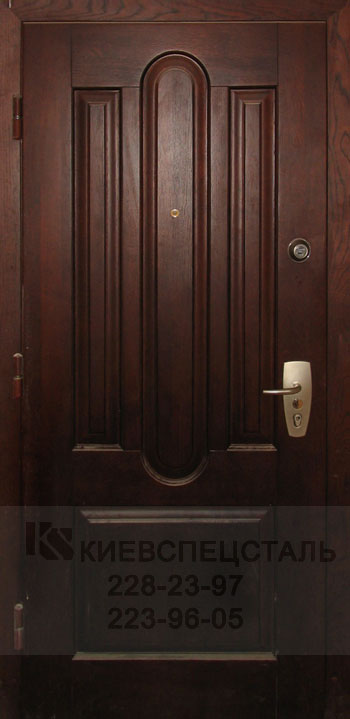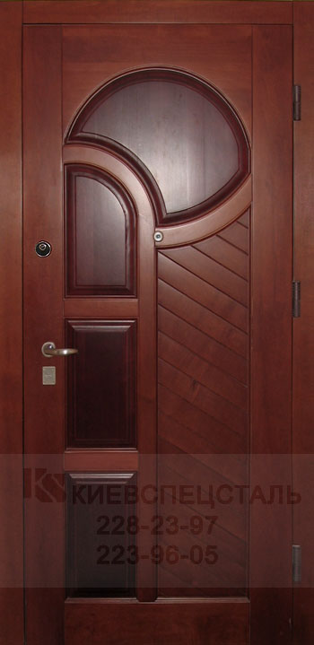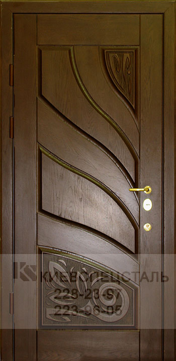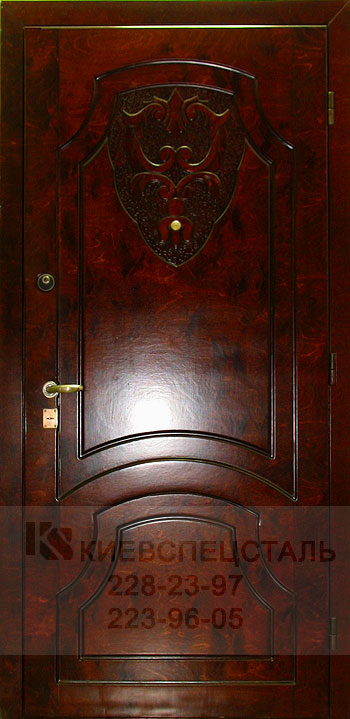 Филенка - это декоративная накладка из натурального дерева. Такая накладка изготовляется индивидуально для каждой двери, в соответствии с размерами и конфигурацией узоров, и привинчивается непосредственно к металлическому полотну двери. Образцы входных металлических дверей с отделкой филенка: |