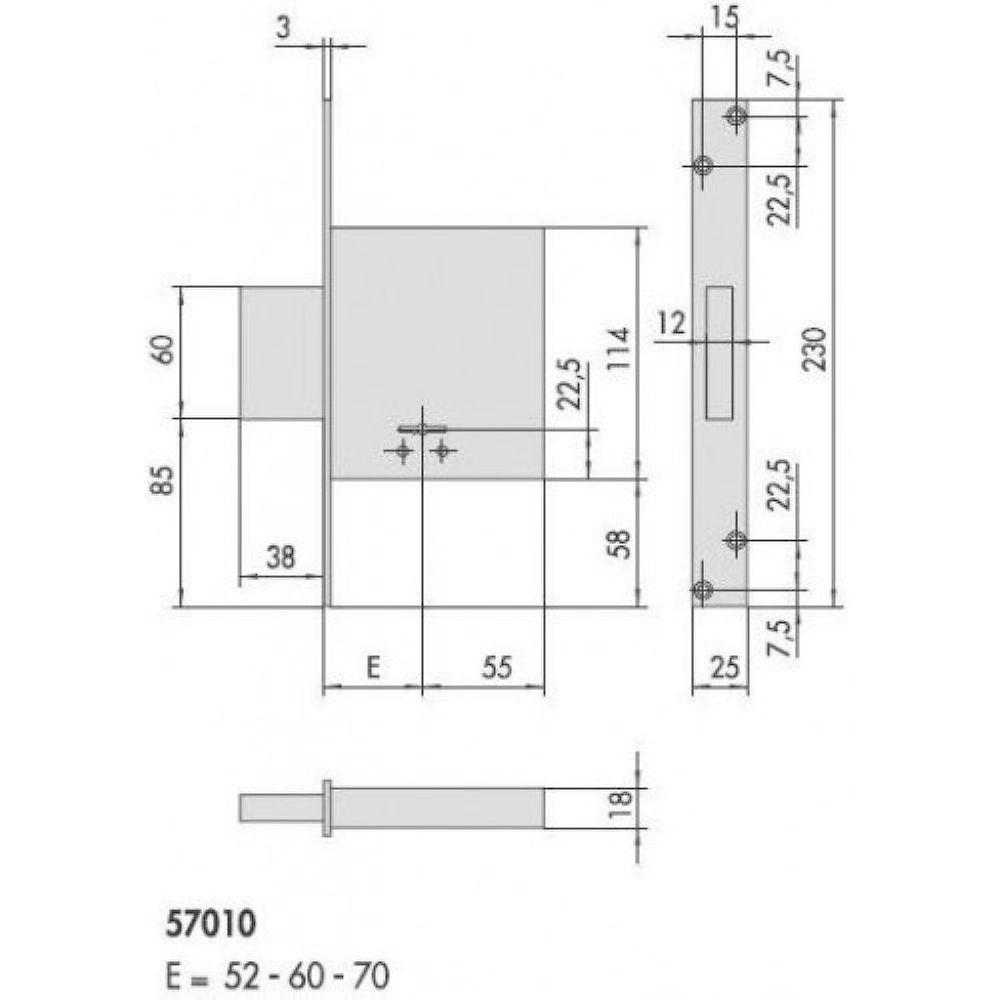 Механічний замок Cisa 57010 являє собою надійний і практичний верхній замок з механізмом секретності сувальдного типу, призначений для установки в двері, виготовлені з дерева або металу. Механізм замка обладнаний однією точкою замикання і розрахований на два оберти ключа. Торцева пластина виконана в кольорі хромованого матеріалу. У комплекті поставки присутній комплект з п’яти ключів, корпус замку, а також відповідна планка і необхідні кріпильні деталі. Варто також відзначити, що в даному замку виробником не передбачена можливість його перекодування, а монтаж можна робити в лівому і правому виконанні. Моделі: під сувальдний ключ, для дерев’яних і металевих дверей товщиною від 30 мм. Технічні характеристики: – шість сувальд, – цілісний сталевий ригель на чотири півоберту. Покриття: нікель. Пружинна засувка: реверсивна. Конструктивні особливості: Видалення ключового отвору (Backset): 55 Тип механізму секретності: сувальдний. Кількість ригелів: 1 Кількість точок замикання: 1