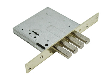 Замок сувальдной (сейфовой) конструкции. Данный замок, как правило, устанавливают вместо более слабых и подлежащих замене Fayn, старых Kale и других замков, которые были установлены за лицевую планку. Ригеля замка диаметром 14мм выходят на 38мм.